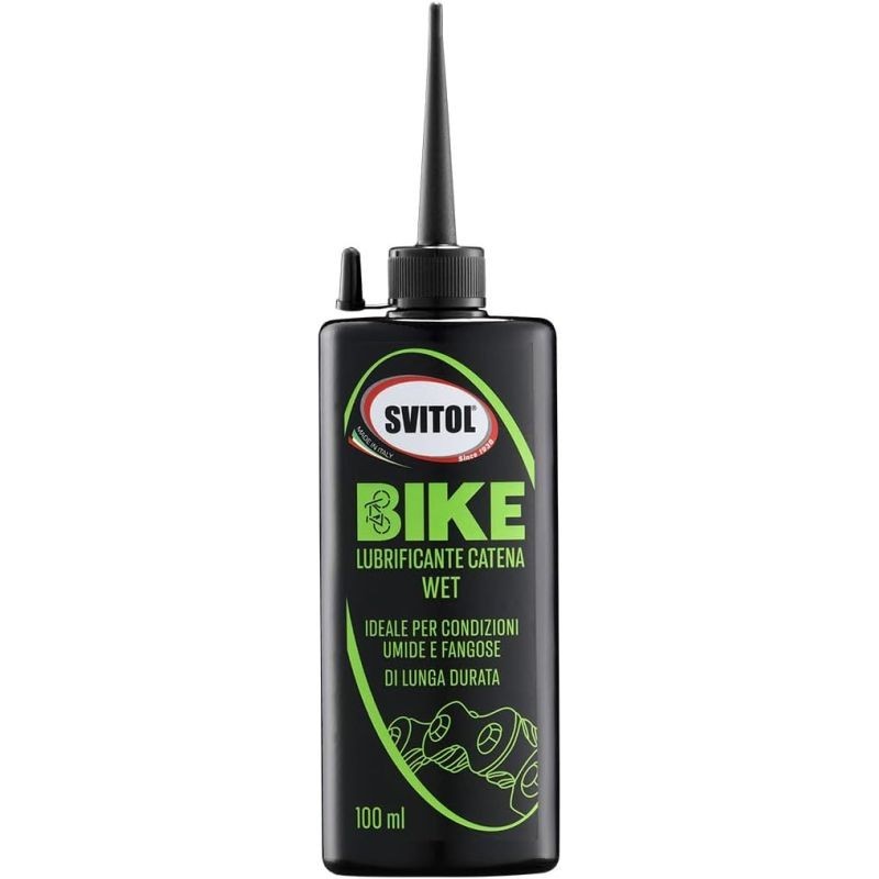 Il lubrificante catena bici wet Svitol è ideale per catena, cambio, deragliatori, pacco pignoni, cavi e leve.