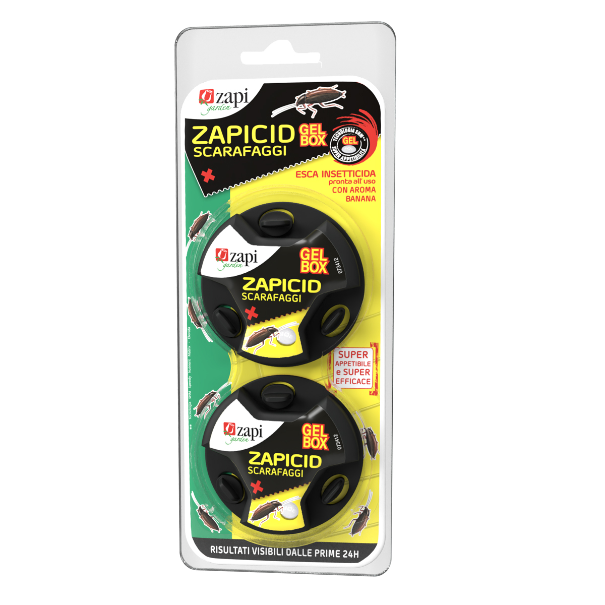 per il controllo di blatta fuochista (Blattella germanica) e scarafaggio nero (Blatta orientalis), ninfe e adulti di entrambi i sessi.