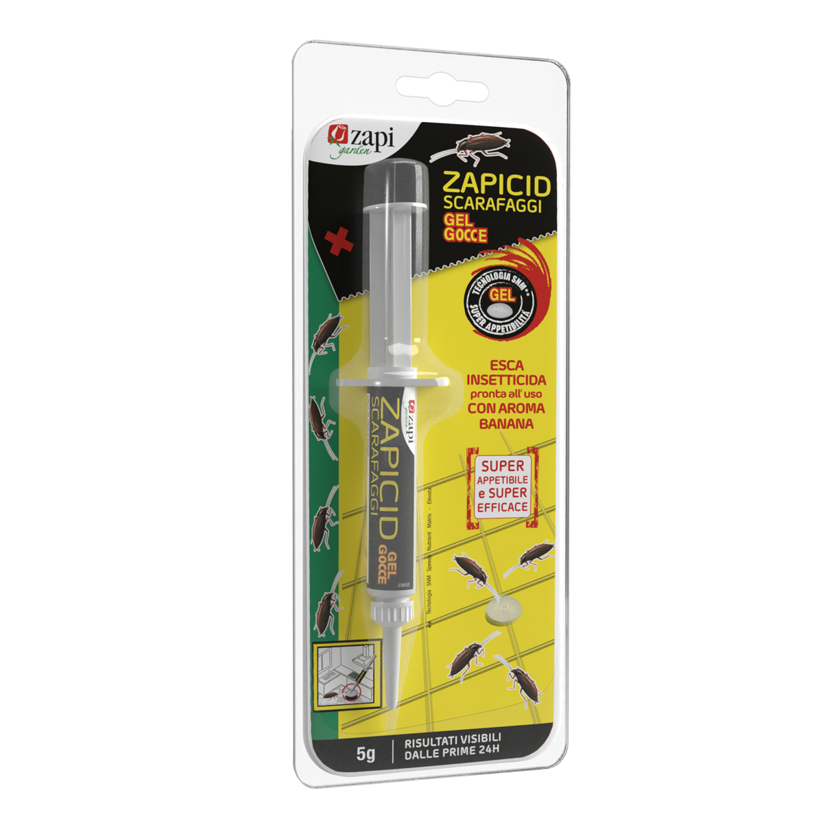 per il controllo delle principali specie di scarafaggi (Blattella germanica, Blatta orientalis, Supella longipalpa, Periplaneta americana), ninfe e adulti di entrambi i sessi.