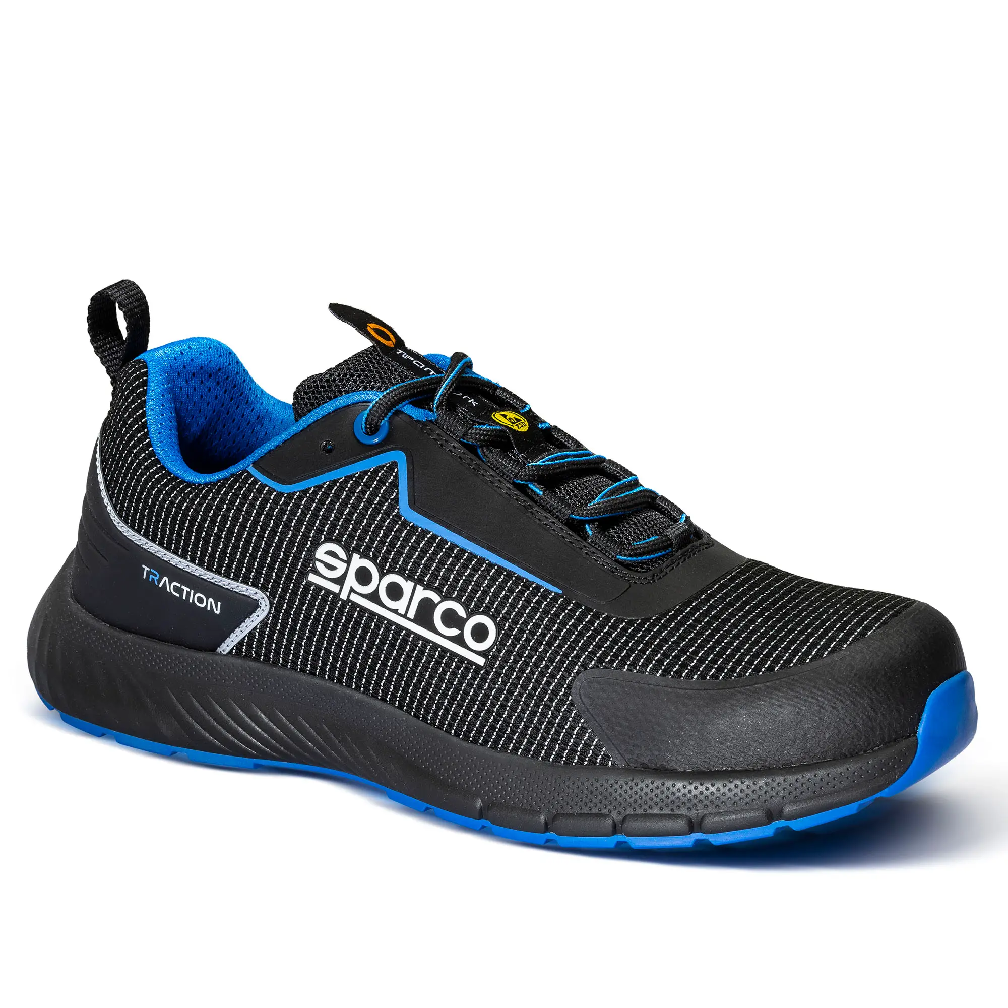 TOMAIA IN TESSUTO ANTI-ABRASIONE RIFLETTENTE, INTERSUOLA IN EVA E BATTISTRADA IN GOMMA “FO+HRO”.